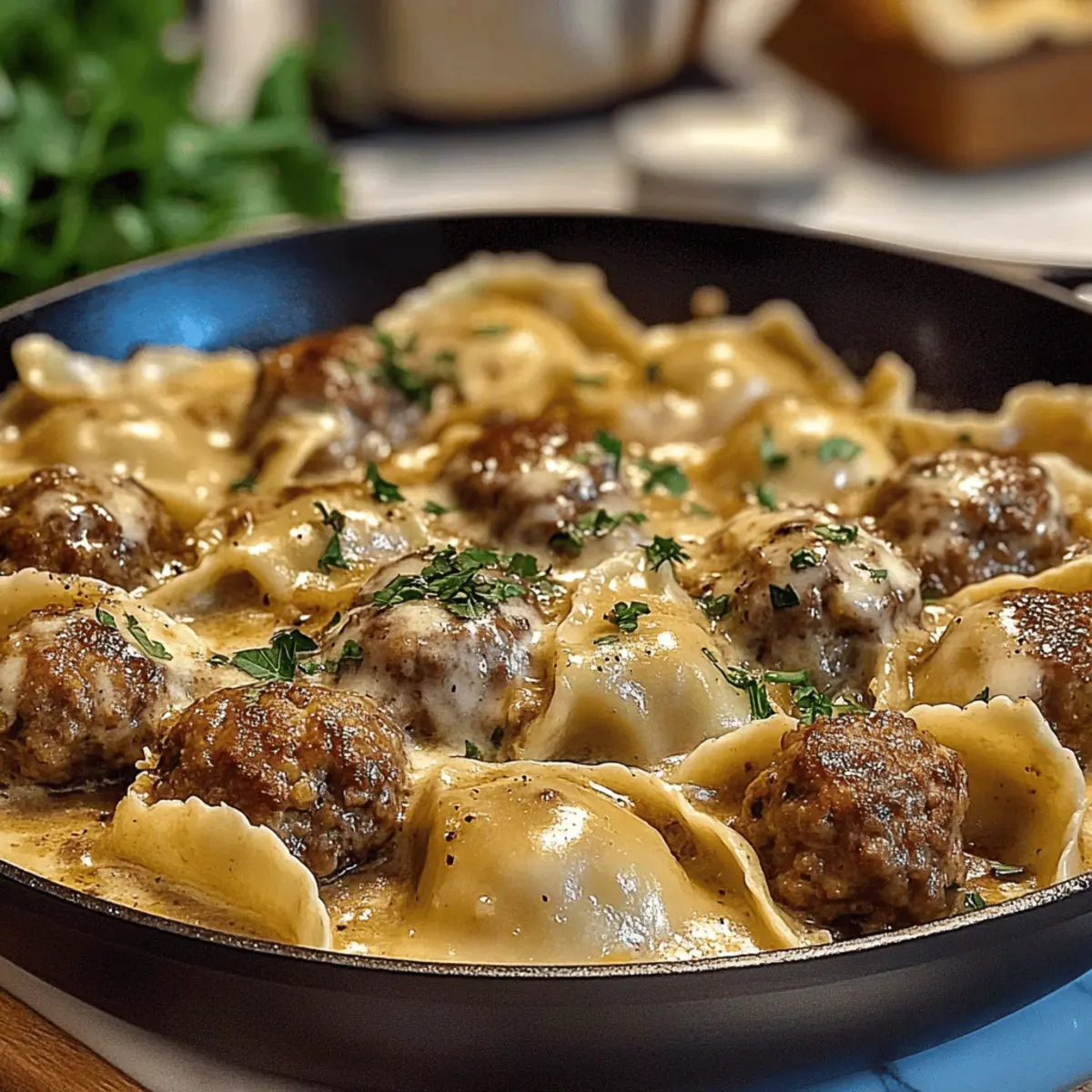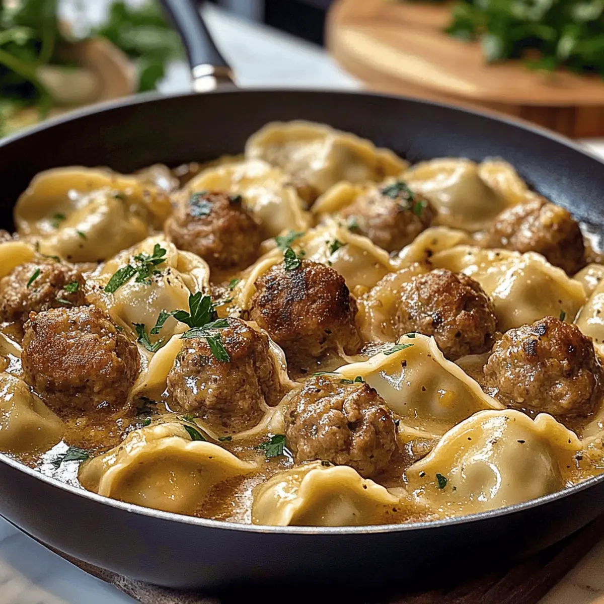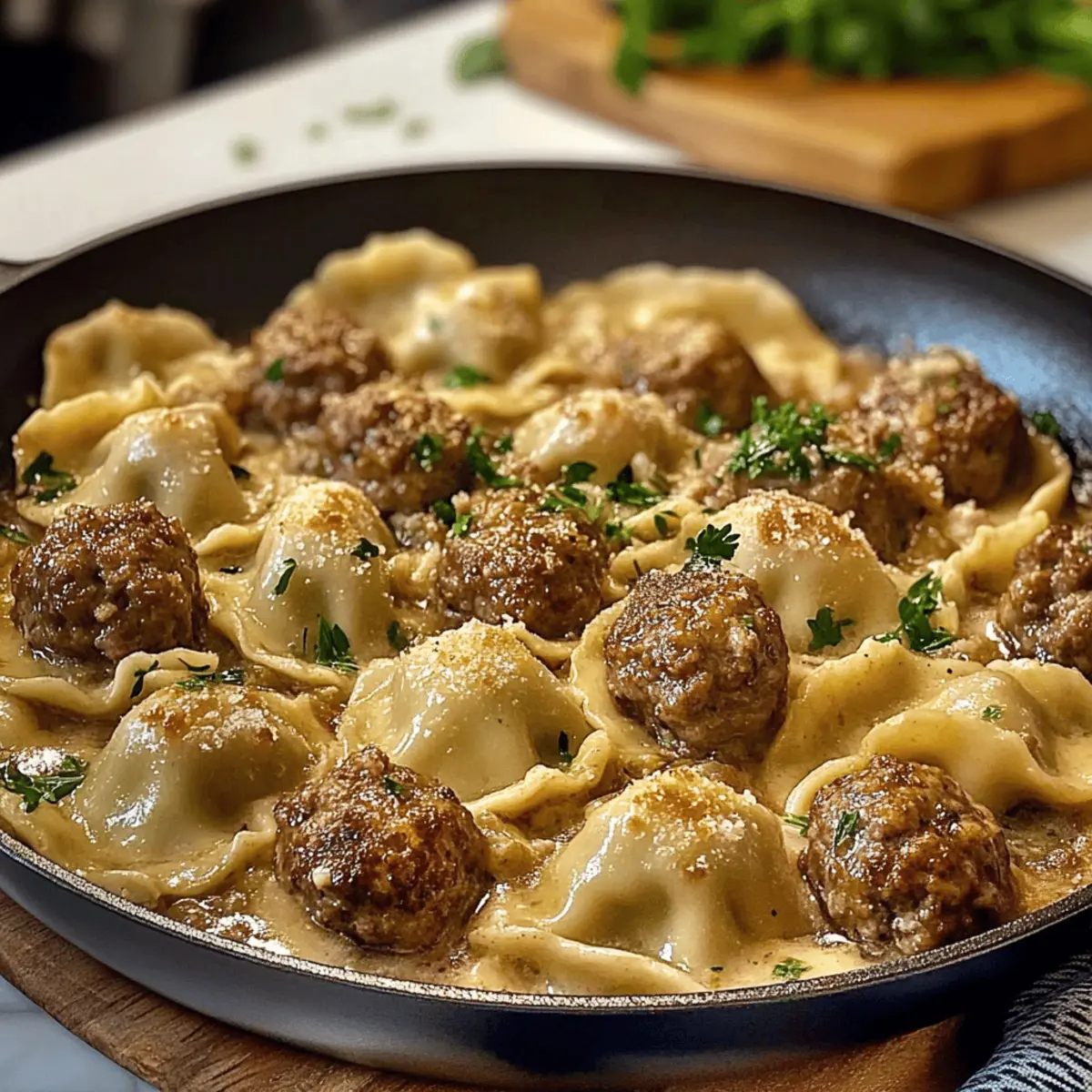 - Return the cooked meatballs and fried pierogies to the skillet, gently tossing everything together to coat evenly in the creamy sauce. Cook for an additional 2-3 minutes to heat through. Serve warm, garnished with freshly chopped parsley or dill.