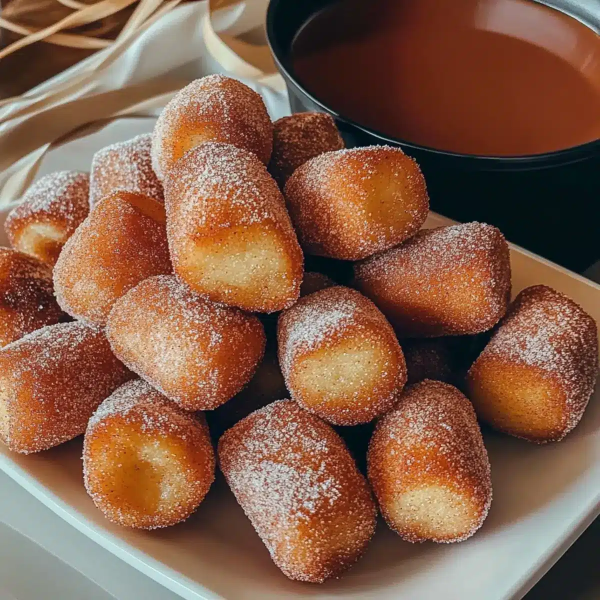 Cinnamon-Spiced Hot Chocolate: Enjoying these churro bites with a cozy cup of spiced hot chocolate creates a comforting dessert experience. The warmth of the drink melds perfectly with the churros, making it ideal for chilly evenings.