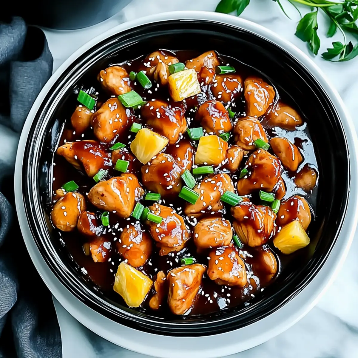 - Serve the Sweet Hawaiian Crockpot Chicken over fluffy rice or noodles, garnish with sliced green onions and sesame seeds.