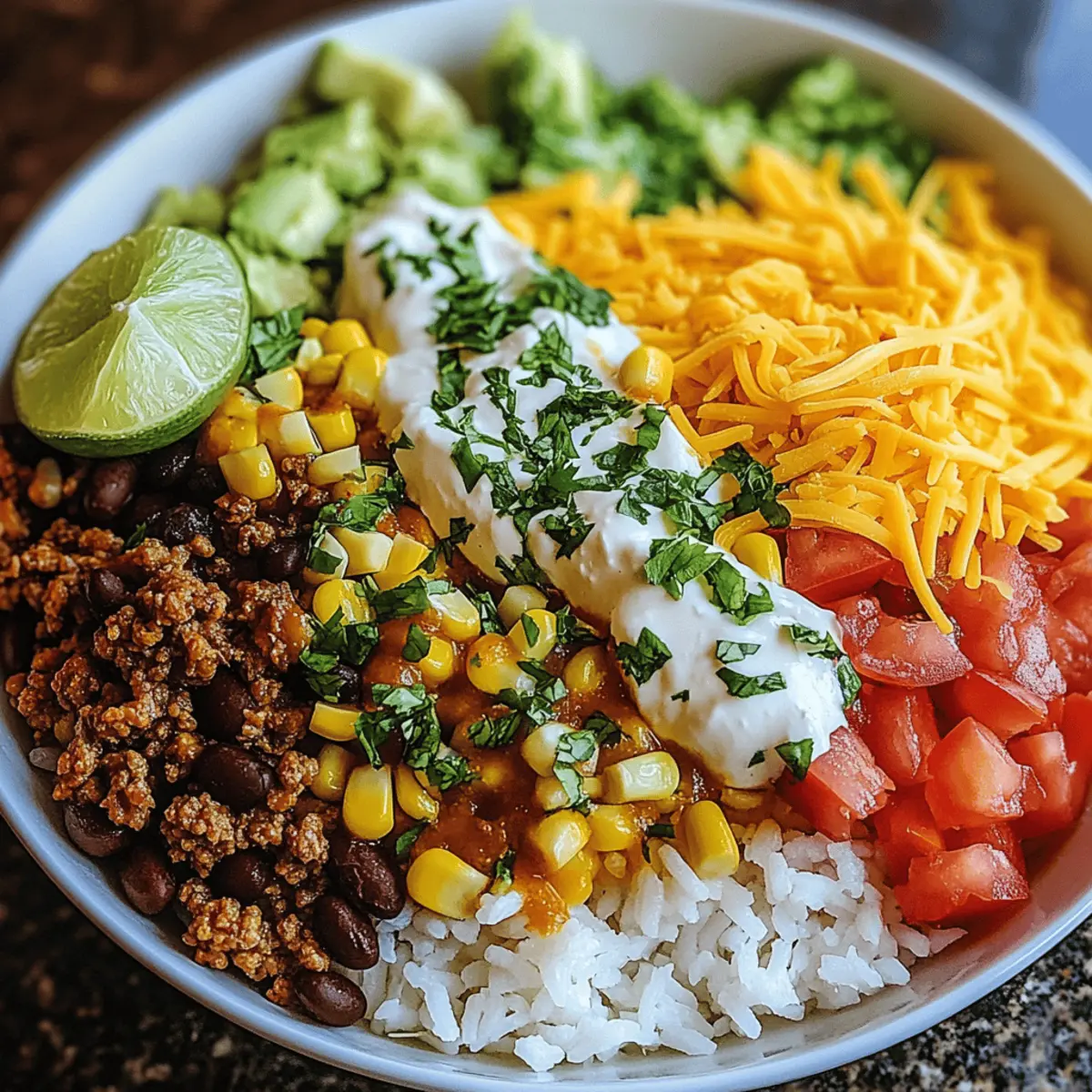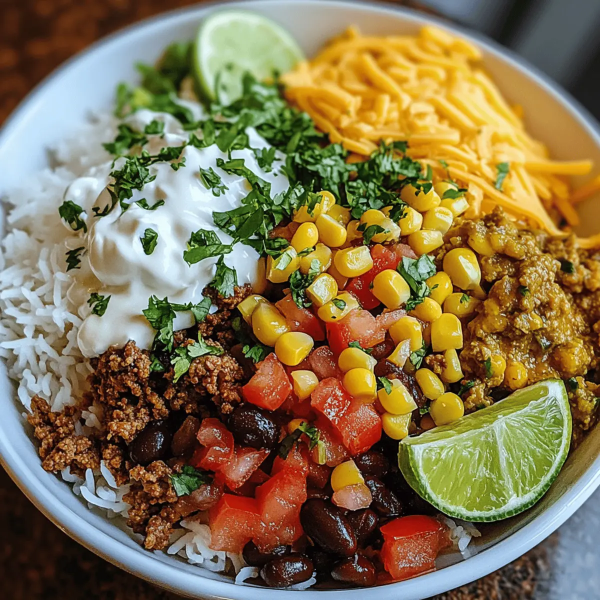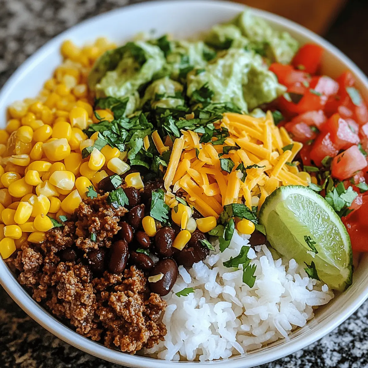 The fragrance of sizzling ground beef fills my kitchen, instantly transporting me back to family dinners filled with laughter and love. Today, I’m excited to share my Ultimate Taco Rice Bowl, a dish that perfectly blends the comforting traditions of Mexican-American cuisine with a quick and customizable twist. This easy weeknight dinner not only saves you from the fast food rut but also allows you to put your unique spin on each bowl! Want it vegetarian? Swap in some roasted veggies or beans; craving something heartier? Go for ground turkey or beef! With its delightful mix of textures and flavors—fluffy rice, tender beans, and crunchy fresh toppings—this meal is sure to become a staple in your home. Are you ready to dive into the vibrant world of Taco Rice Bowls?