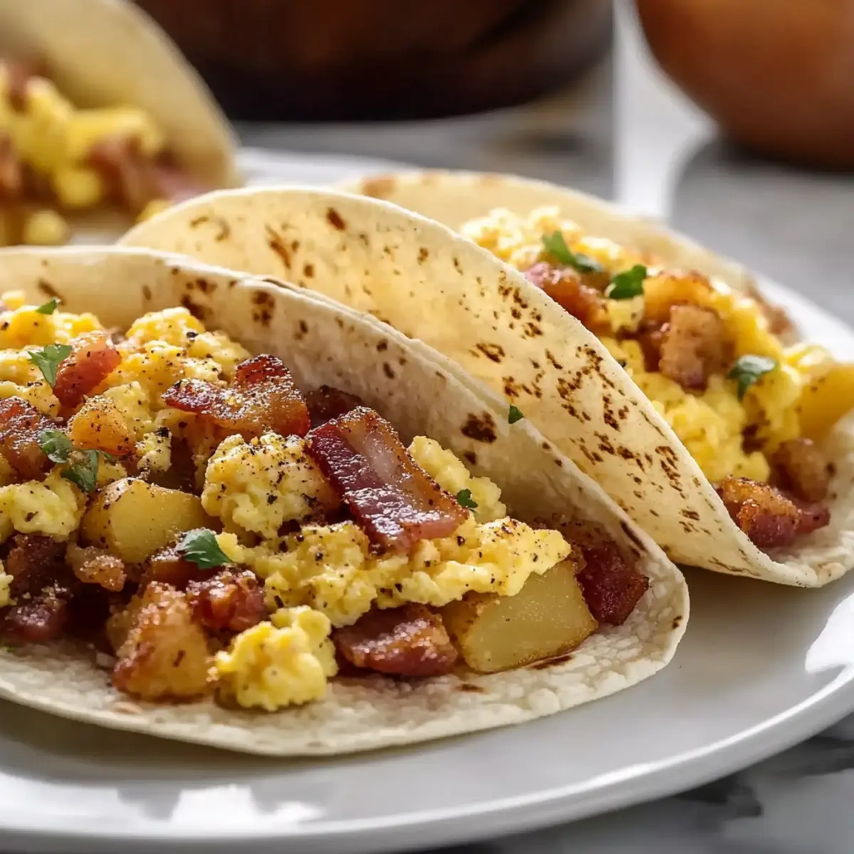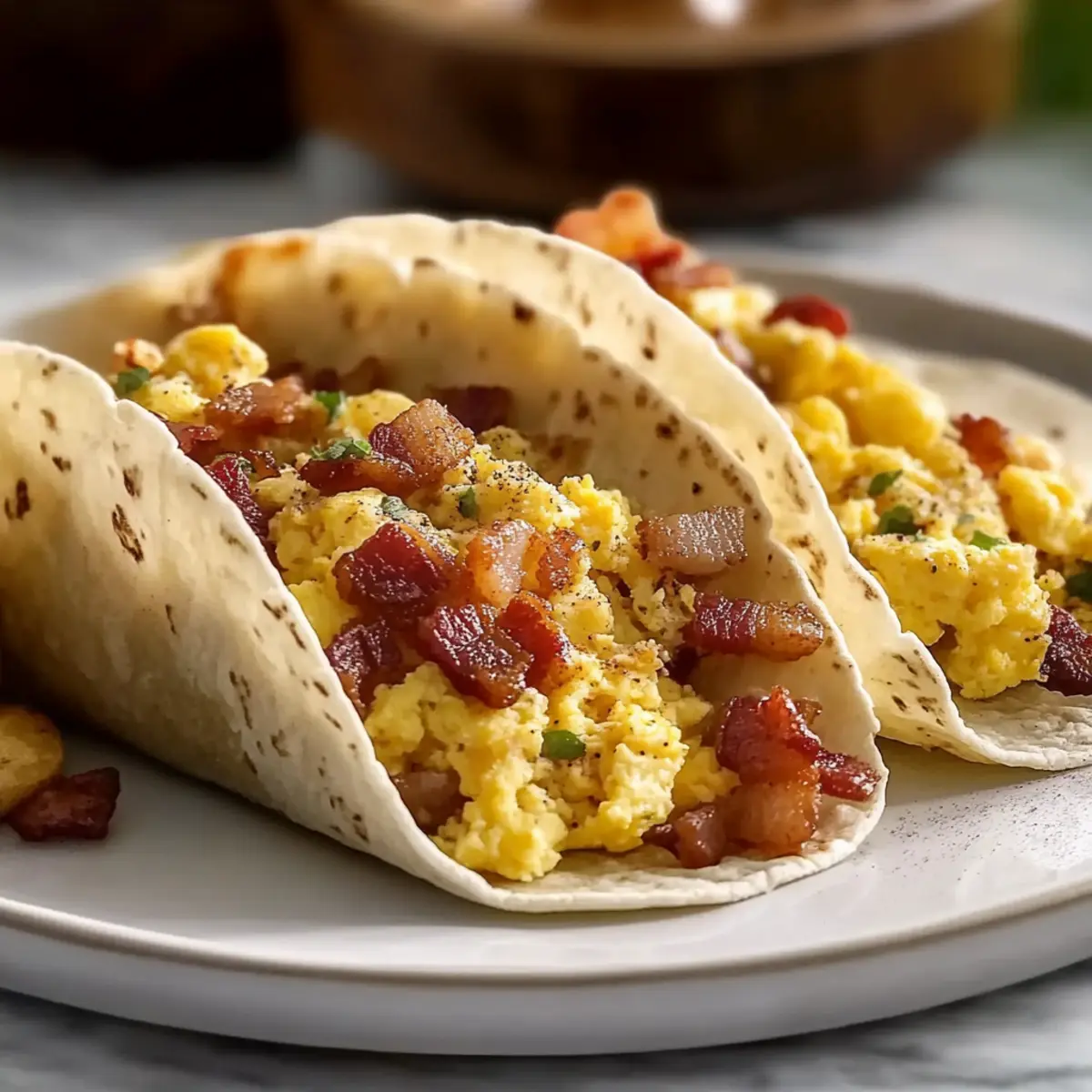 Comforting Flavors: These Tasty Baked Breakfast Tacos combine savory bacon, fluffy eggs, and seasoned potatoes, creating a delightful start to your day.
