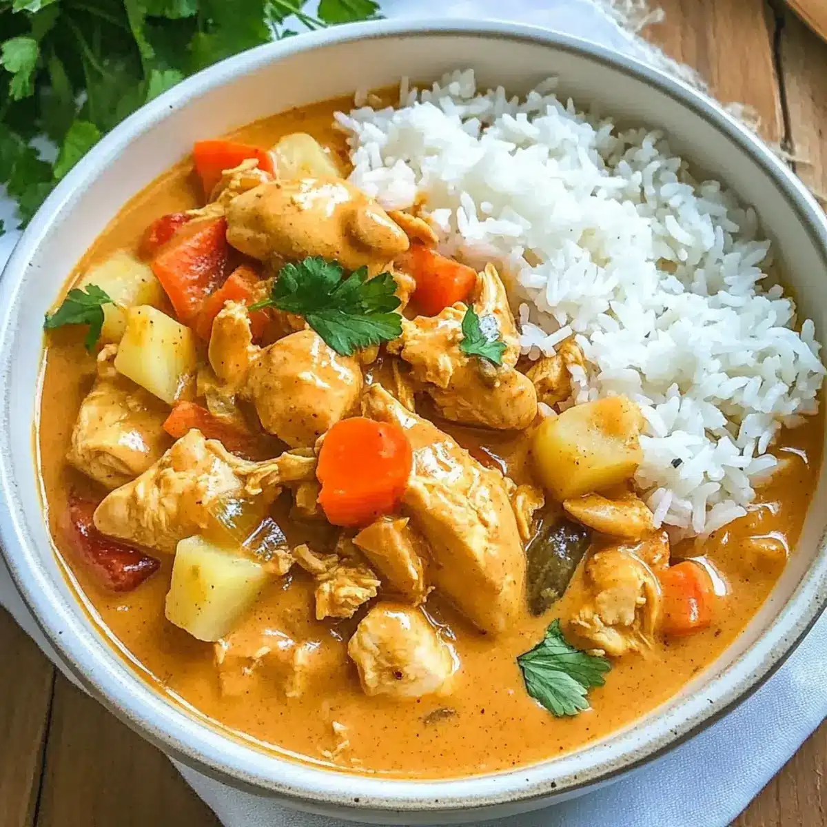 Vegetarian Delight: Use tofu instead of chicken, soaking it in the curry for a hearty vegetarian option that absorbs all those fabulous flavors.