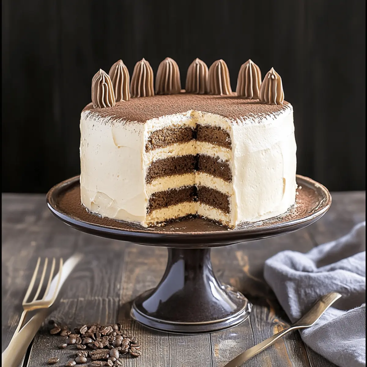 Indulgence Awaits: This Tiramisu Cake is a showstopper that combines rich coffee flavors with a moist vanilla base, mimicking the classic dessert we love.