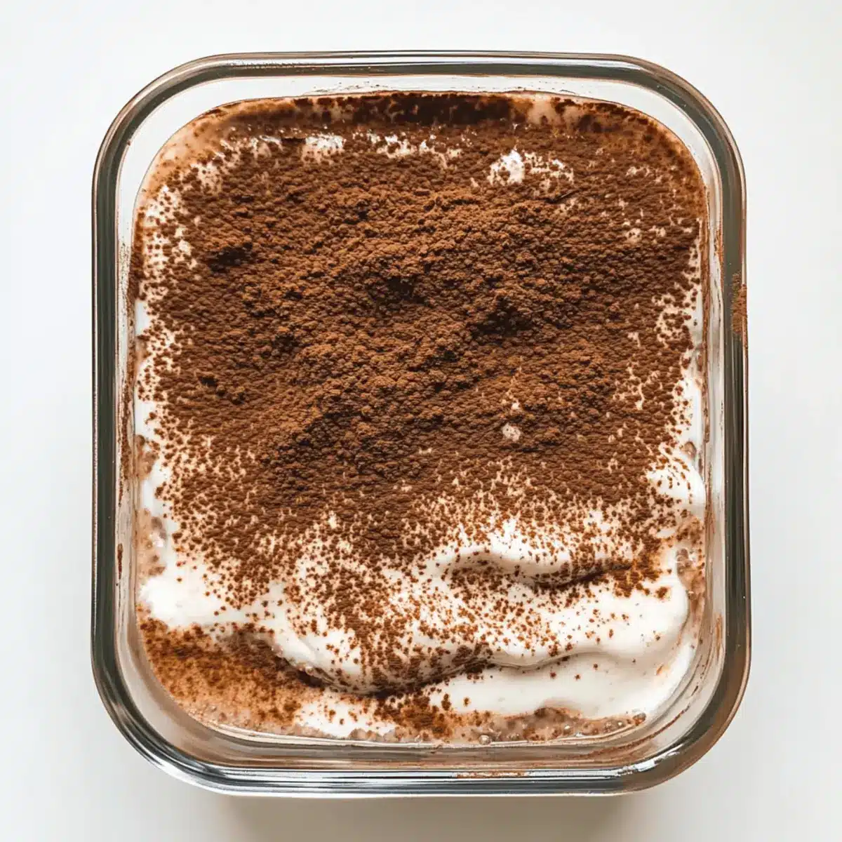 To serve, spoon a generous layer of the prepared chia pudding into bowls or dessert dishes. Top each serving with a dollop of your sweetened yogurt. For the final touch, dust the top with high-quality cocoa powder using a fine mesh sieve. This not only adds flavor but also enhances the visual appeal of your healthy Tiramisu Chia Pudding.