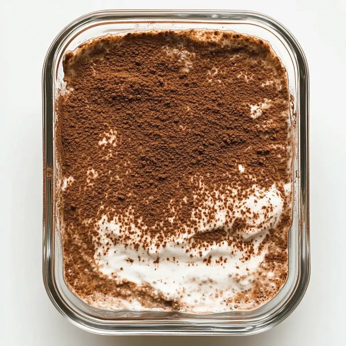 When you’re ready to serve, grab a small bowl and add 1 cup of vanilla yogurt or plant-based yogurt. If you like your yogurt a bit sweeter, blend in a drizzle of honey, maple syrup, or your sugar substitute to taste. This step adds an extra layer of creaminess that mirrors the traditional mascarpone topping in classic tiramisu.