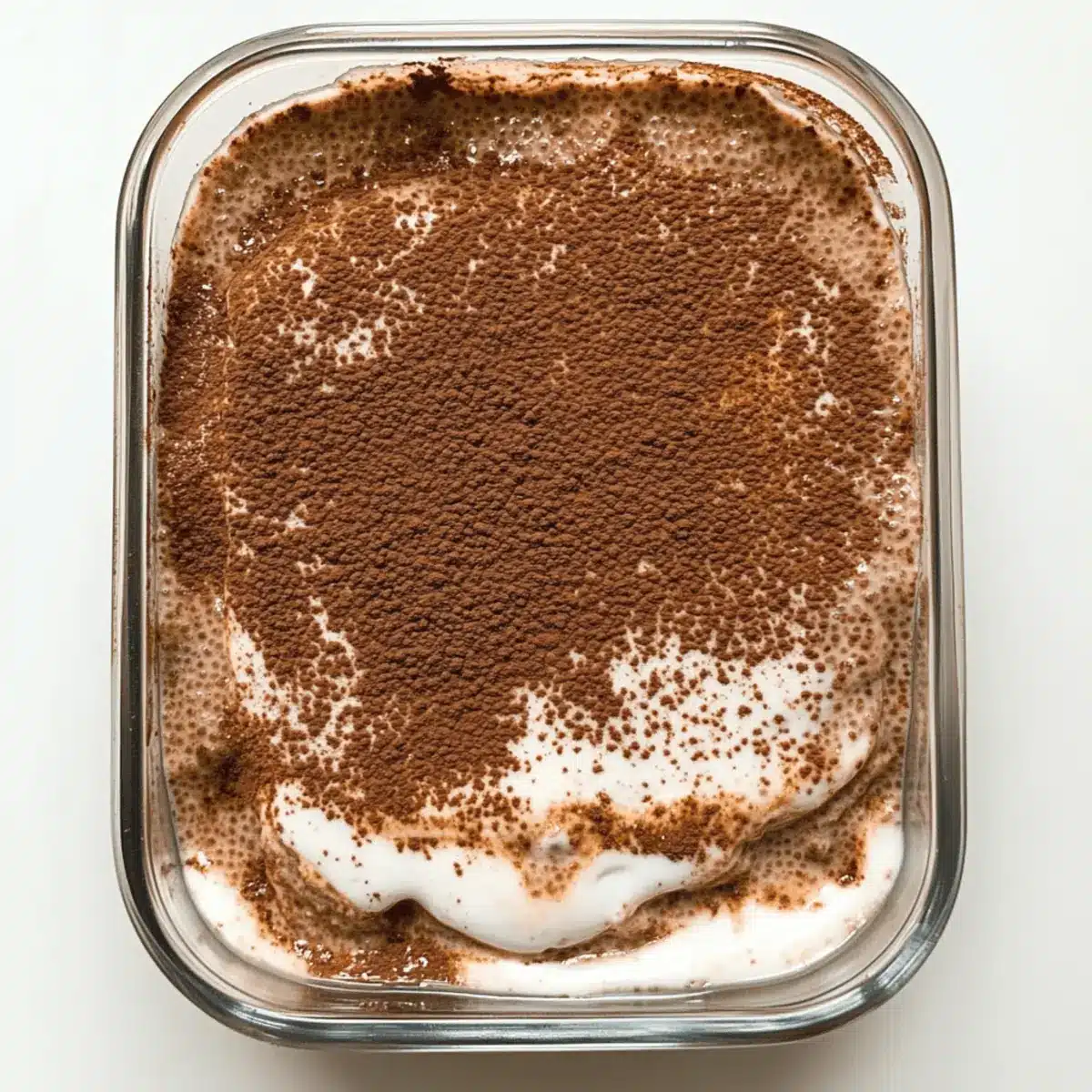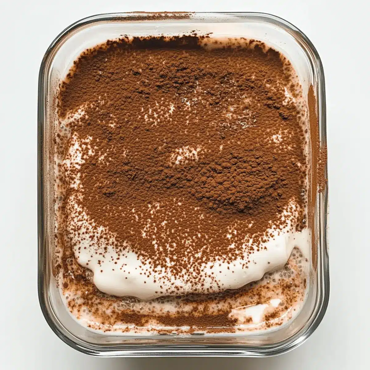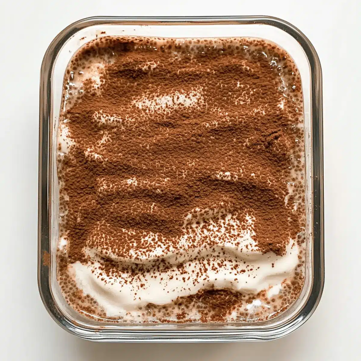 Once the chia pudding has set, scoop individual portions into bowls or jars. Top each serving with a generous dollop of the sweetened yogurt. Finish by dusting cocoa powder over the top to replicate the classic tiramisu look and enhance the chocolate flavor—this step adds a gourmet touch to your Tiramisu Chia Pudding.