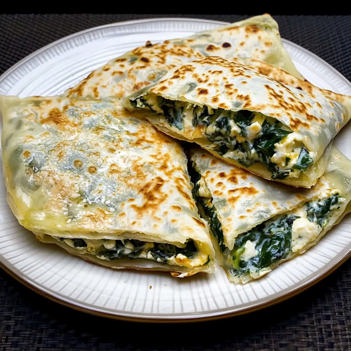 These Turkish Gözleme are fantastic for meal prep, perfect for busy home cooks looking to save time. You can prepare the dough and refrigerate it up to 24 hours in advance; simply wrap it tightly in plastic wrap to prevent it from drying out. The filling can also be made ahead—mix the spinach, onions, and seasonings, then store it in an airtight container in the refrigerator for up to 3 days. When you’re ready to serve, roll out the dough and assemble the gözleme with your prepared filling. Cook them on the griddle as directed, and you’ll still enjoy that delightful crunch and warm, cheesy goodness—just as delicious as if made fresh that day!