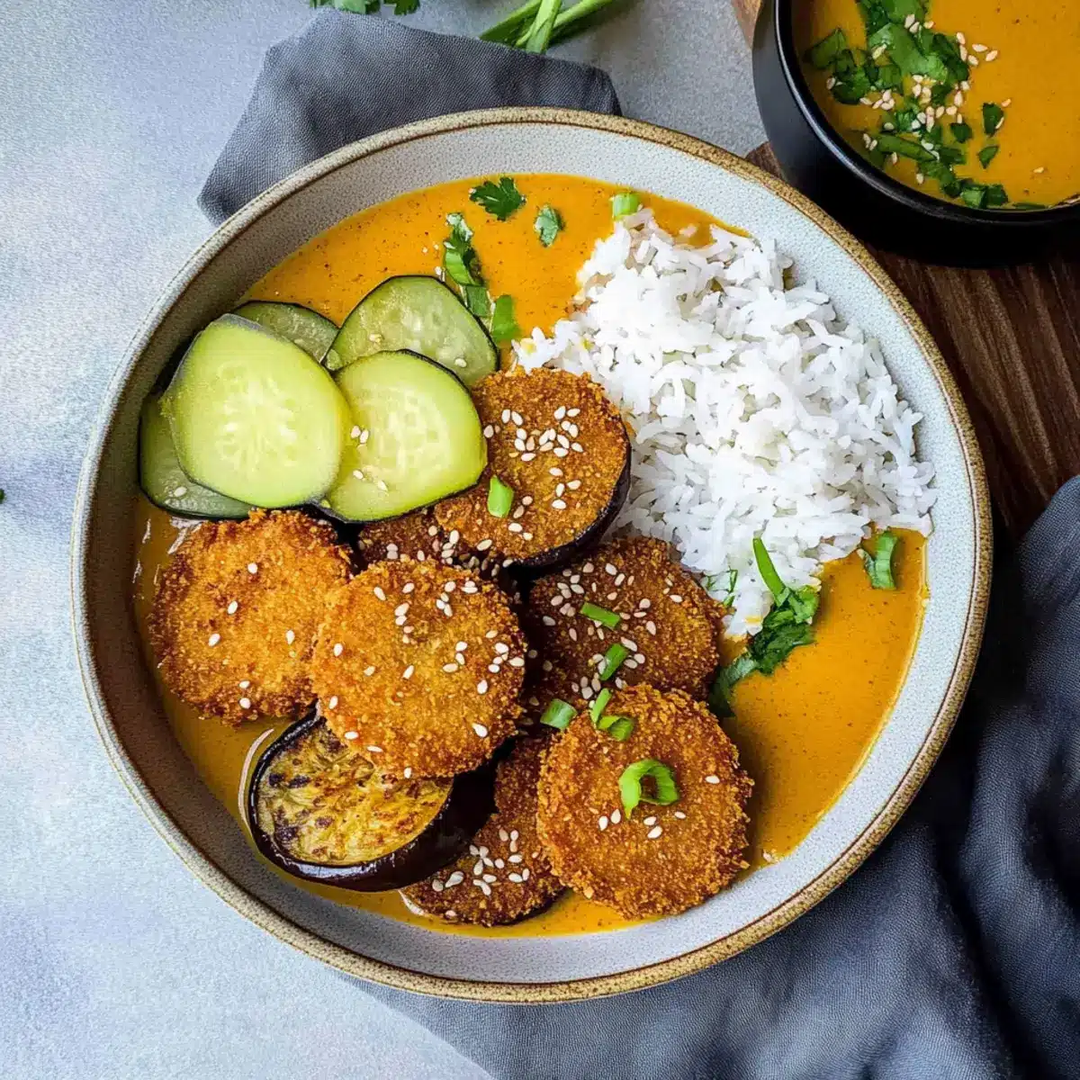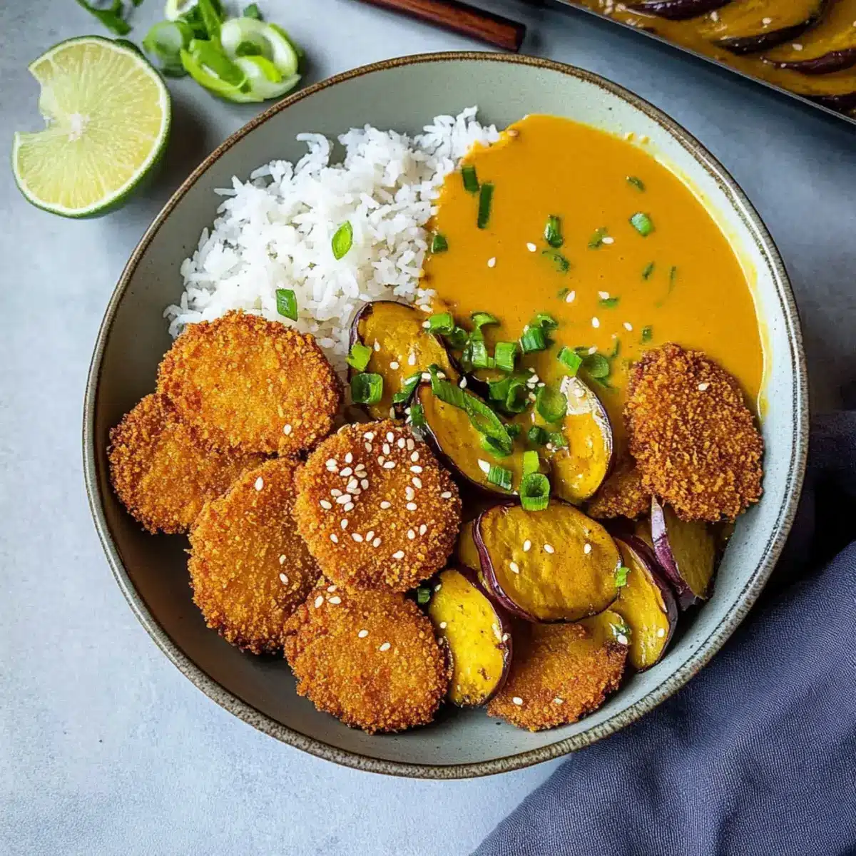Vibrant, Resourceful Ingredients: This recipe champions colorful vegetables like sweet potato and eggplant, making it not only a feast for the eyes but also a canvas for creativity. Crispy Texture: The delightful crunch of the breaded vegetables adds a luxurious contrast to the creamy coconut curry. Quick and Easy: With minimal prep and cooking time, this dish fits perfectly into any busy weeknight routine. Endless Customization: Feel free to swap in other veggies or proteins like tofu or tempeh for a personalized experience. You can even amp up the heat by tossing in some chili powder for an extra kick! Ready to explore more plant-based delights? Don’t miss out on trying the Honey Curry Roasted to accompany your meal!