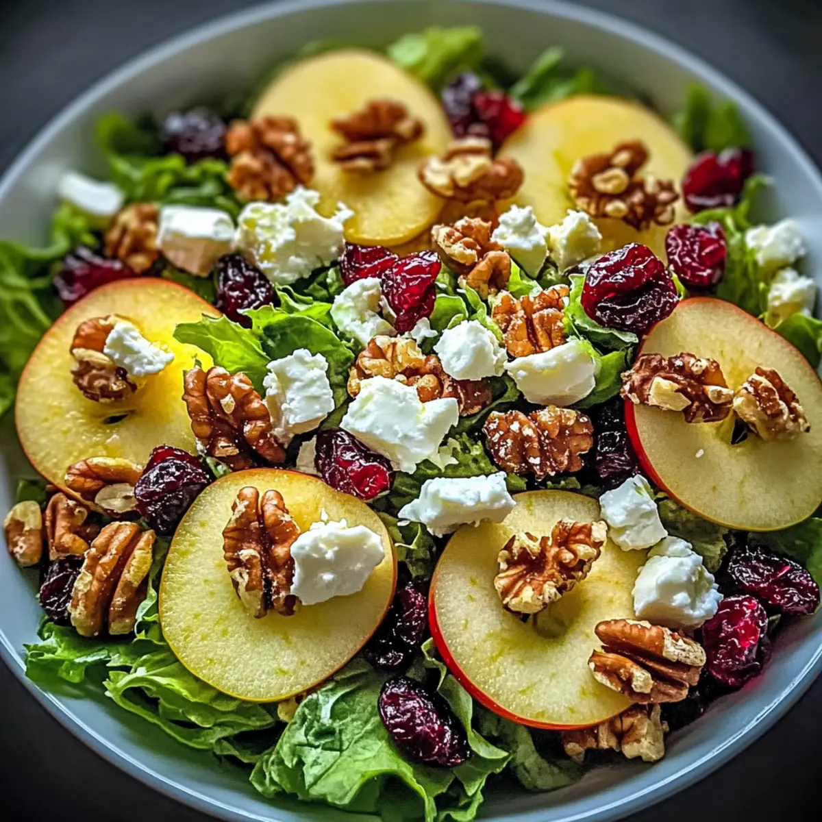 Preparing the vibrant Honeycrisp Apple Feta Salad in advance is a fantastic way to save time on busy weeknights! You can prepare the dressing up to 3 days ahead and store it in the refrigerator in an airtight container. To keep the apples from browning, slice them up to 24 hours in advance and toss them with a bit of lemon juice before refrigerating. This not only preserves their freshness but also adds a zesty flavor. When you’re ready to serve, simply layer the mixed greens in a bowl, fan out the apple slices, and sprinkle on the feta, walnuts, and cranberries. Drizzle the dressing just before serving for that crisp, restaurant-quality finish—so you can enjoy the deliciousness of a homemade salad without the last-minute rush!