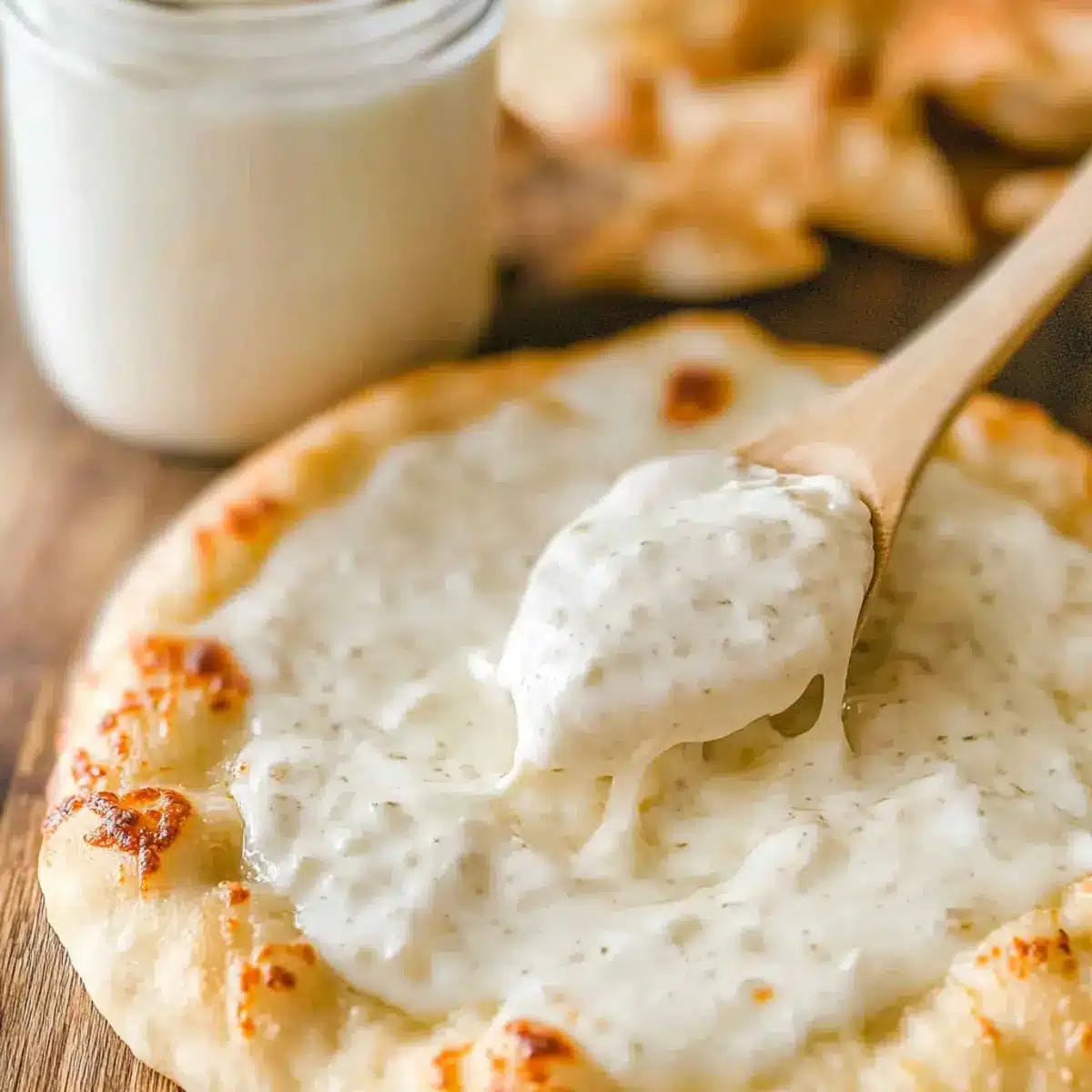 Very easily! Store your homemade white pizza sauce in an airtight container in the refrigerator for up to 5 days. To ensure the best quality, let it cool completely before sealing it up. When you’re ready to use it, just warm it slightly in the microwave, stirring until it reaches a spreadable consistency.