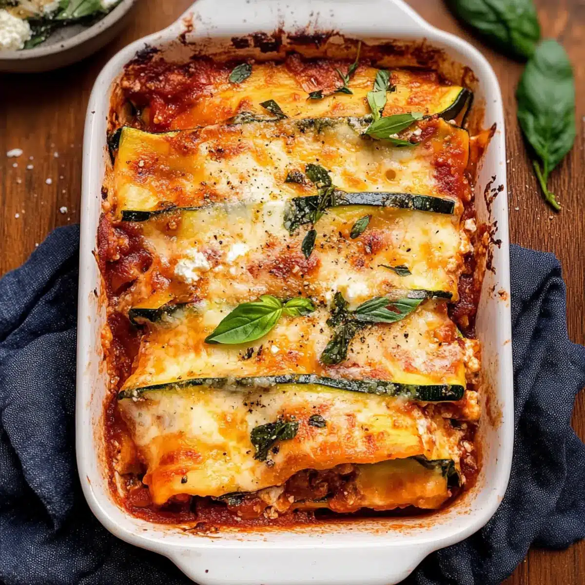 Once out of the oven, allow the zucchini lasagna to cool for about 10 minutes before slicing. This resting time helps the layers to set beautifully. Sprinkle with fresh chopped basil before serving to add a burst of flavor and color. Enjoy this delightful dish that showcases the best of healthy comfort food!