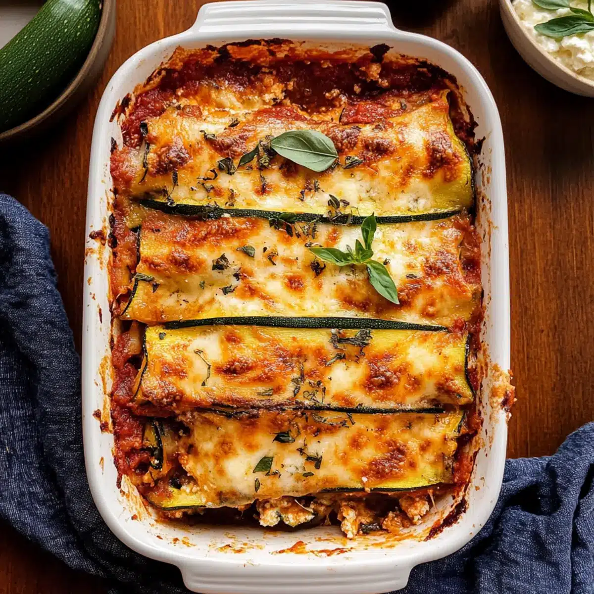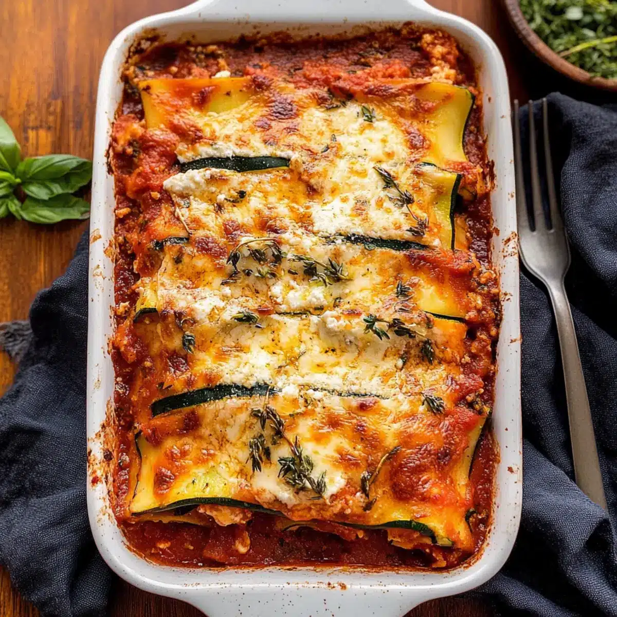 Healthy alternatives often feel lacking, but this zucchini lasagna is bursting with flavor! Versatile enough for any occasion, you can easily adapt it with various veggies or proteins. Time-saving preparation means you can enjoy a homemade meal without all the fuss. Crowd-pleasing appeal ensures everyone—kids and adults alike—will savor every bite. Plus, it’s an excellent way to sneak in those veggies while keeping meals exciting! For a full dinner experience, pair it with a light Mediterranean salad or some crusty Italian bread. Give this delightful dish a try, and you won’t be disappointed!